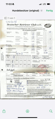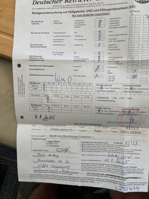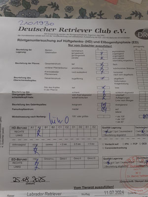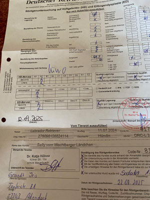 Hurra, das erste Gesundheitsergebniss des S-Wurfes von Jule ist da. Skotti vom Wachtb. Ländchen, HD A1 / ED frei/frei und LÜW O.