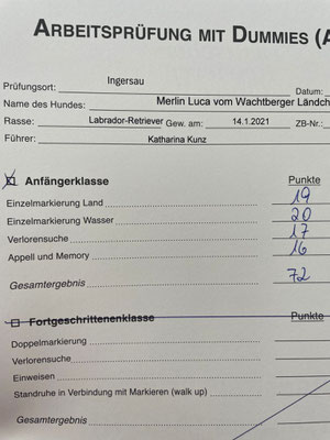 Luca vom Wachtb. Ländchen besteht mit sehr gut die Dummy A. Herzlichen Glückwunsch an das Team, weiter so.
