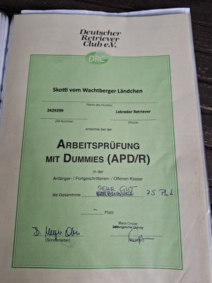 Skotti vom Wachtb. Ländchen hat heute seine komplette Brauchbarkeit mit bravour bestanden. Tolle Leistung für das Team, herzlichen Glückwunsch.
